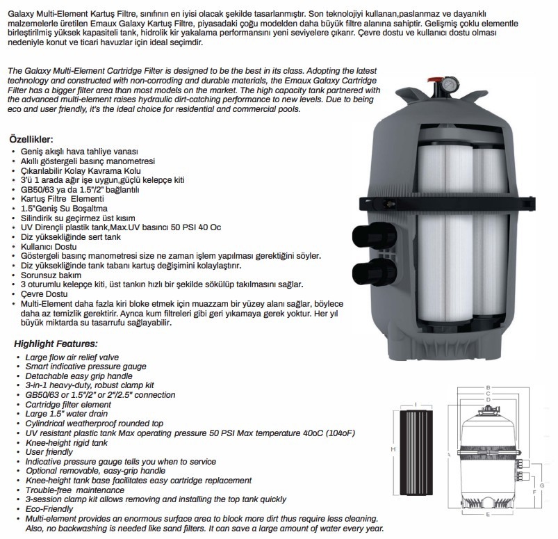 Superpool Galaxy GCF330 Galaxy Multi Kartuş Filtreler