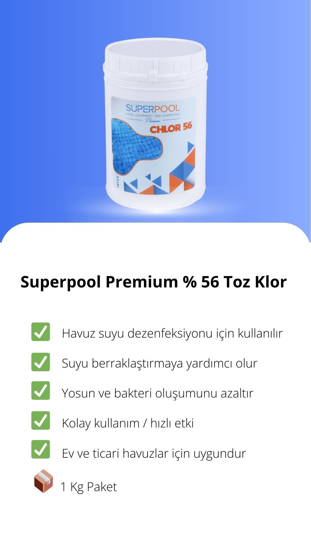 SPP Superpool Superchlor 56 Toz Klor 56 GR 1 KG Premium Havuz Kimyasalı